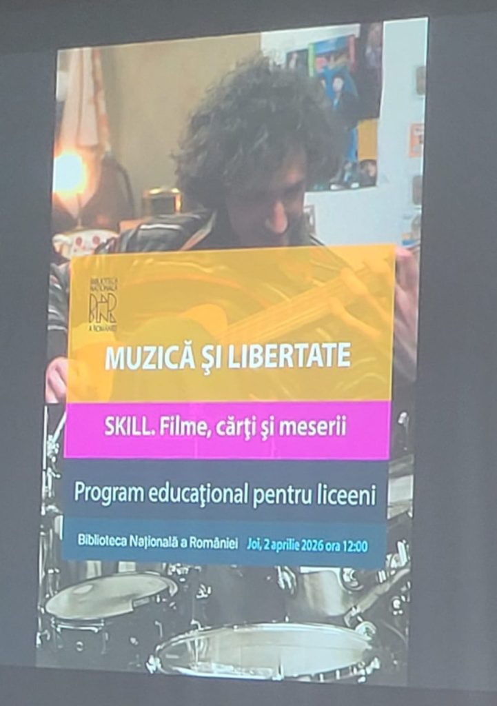 Joi, 2 aprilie 2026, elevi de la clasele a IX-a B, a X-a G și a XI-a A, însoțiți de dna profesoară Georgiana Carabă și de dna bibliotecară Alexandra Ciobanu, au participat la evenimentul cu tema ” Muzică și Libertate”, organizat de Biblioteca Națională a României, în cadrul programului educațional pentru elevi “SKILL. Filme, cărți și meserii”. Elevii au explorat legătura dintre ritm și libertate într-un mod interactiv, prin dialog și jocuri de rol.